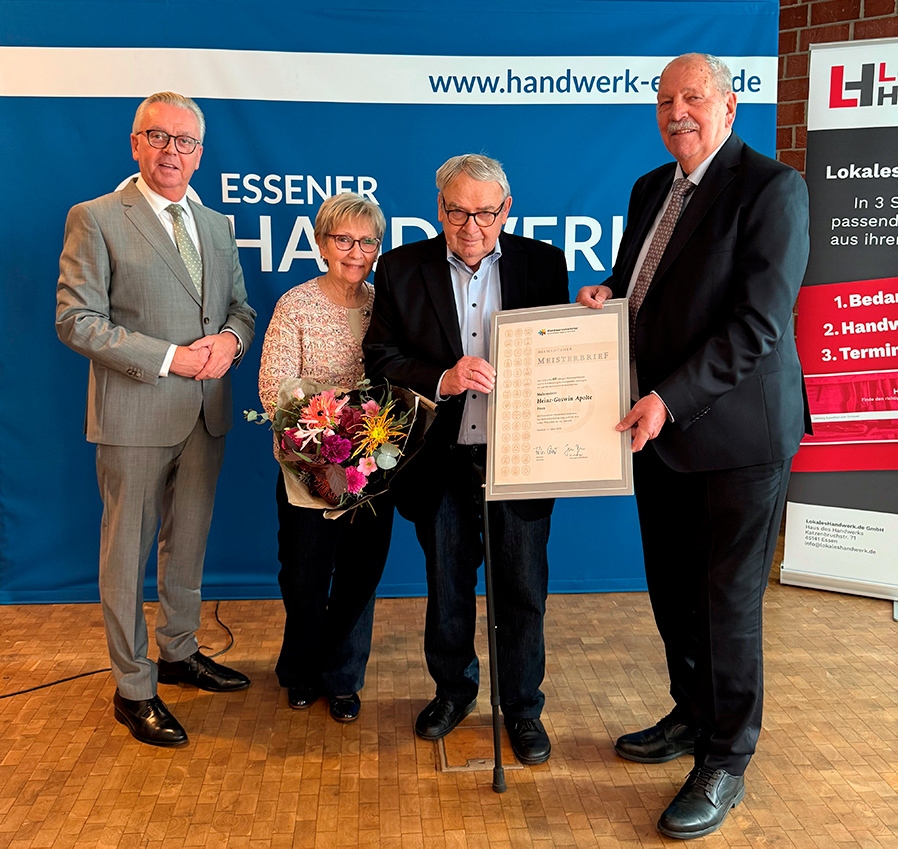 „Sie haben über ein halbes Jahrhundert und länger hinweg Betriebe geführt, unzählige junge Menschen ausgebildet und den Strukturwandel in unserer Stadt nicht nur miterlebt, sondern aktiv mitgestaltet“, betonte van Beek. „Sie sind das lebende Beispiel dafür, was das Handwerk leistet: Es schafft Werte, es sichert Qualität und es ist und bleibt systemrelevant. Wir verneigen uns vor dieser beeindruckenden Lebensleistung.“